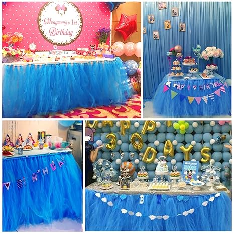 3ft Blue Tulle Table Skirt Queen Wonderland Blue Tablecloth Tutu Tablecloth Skirting Tutu Table Skirt For Christmas Wedding Baby Shower Birthday Cake